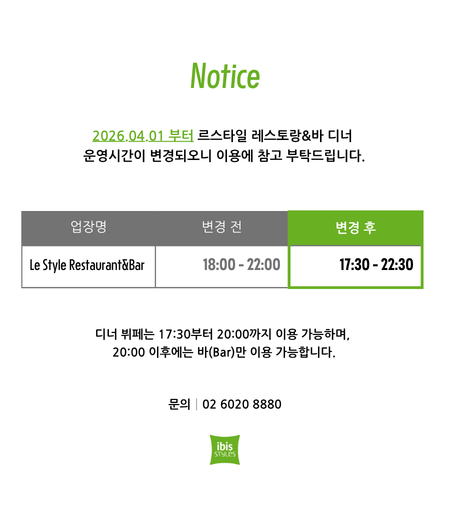 이비스 스타일 앰배서더 서울 명동 (Ibis Styles Ambassador Seoul Myeongdong) 은 카페와 맛집이 밀집한 명동역, 을지로입구역에 위치해 있습니다.
