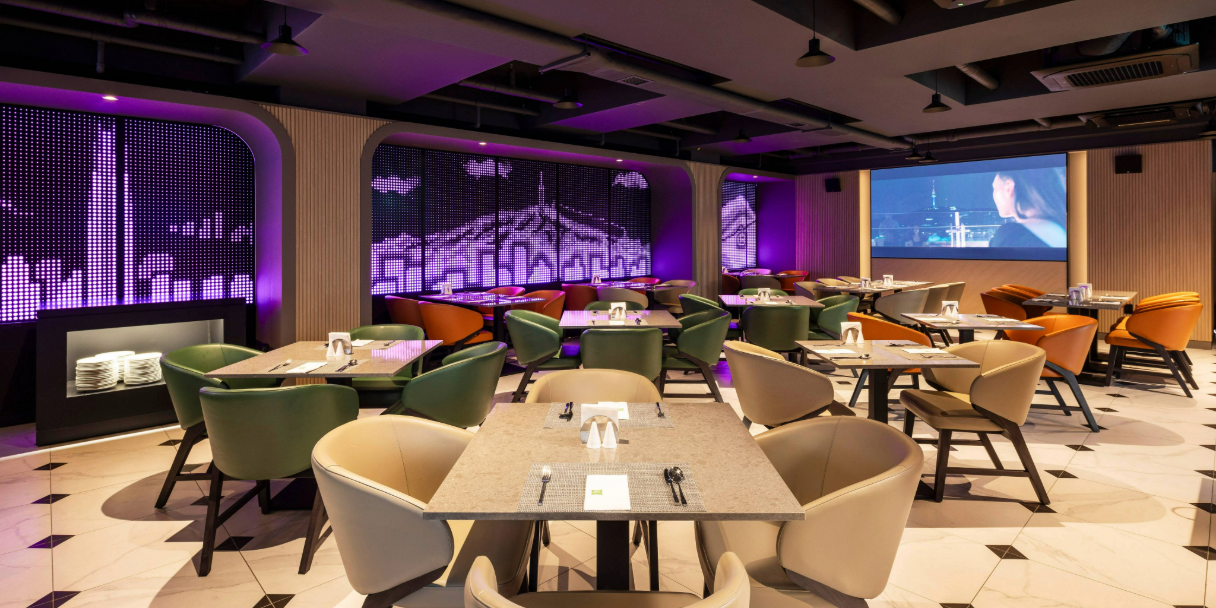 Le style Restaurant creates a sophisticated atmosphere with digital artworks inspired by Namsan Tower one of Seoul’s iconic landmarks and the city skyline, offering all-day dining with a curated menu.