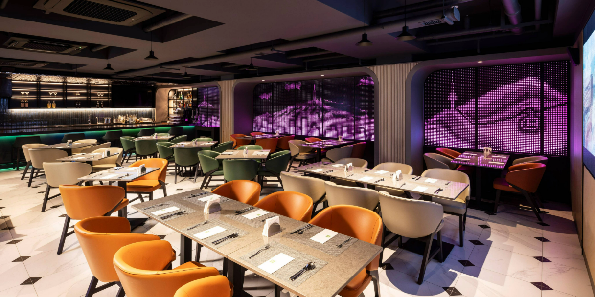Le style Restaurant creates a sophisticated atmosphere with digital artworks inspired by Namsan Tower one of Seoul’s iconic landmarks and the city skyline, offering all-day dining with a curated menu.
