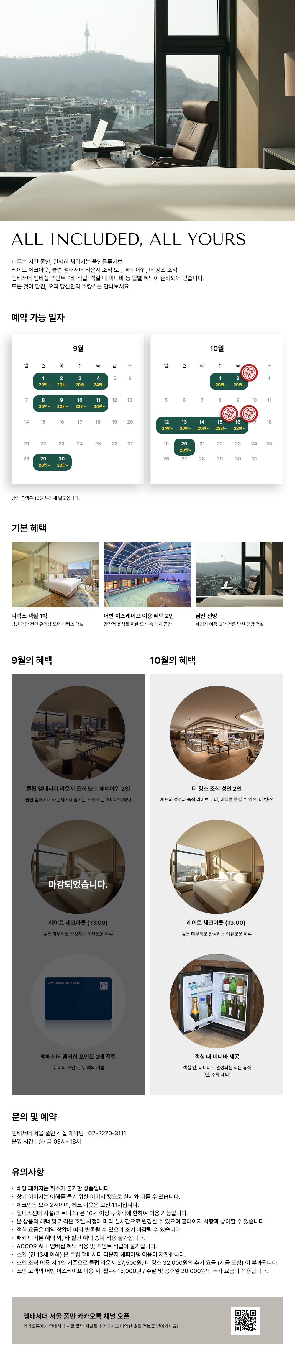 1) 적립 제외: 할인된 금액, 세금, 일부 프로모션, 미니바/룸서비스/상품권/쿠폰/포인트 사용 금액, 공식 홈페이지(www.ambatel.com)을 제외한 타 온라인 사이트를 통한 예약 및 여행사 상품, 타 멤버십 카드 포인트 중복 적립 제외
