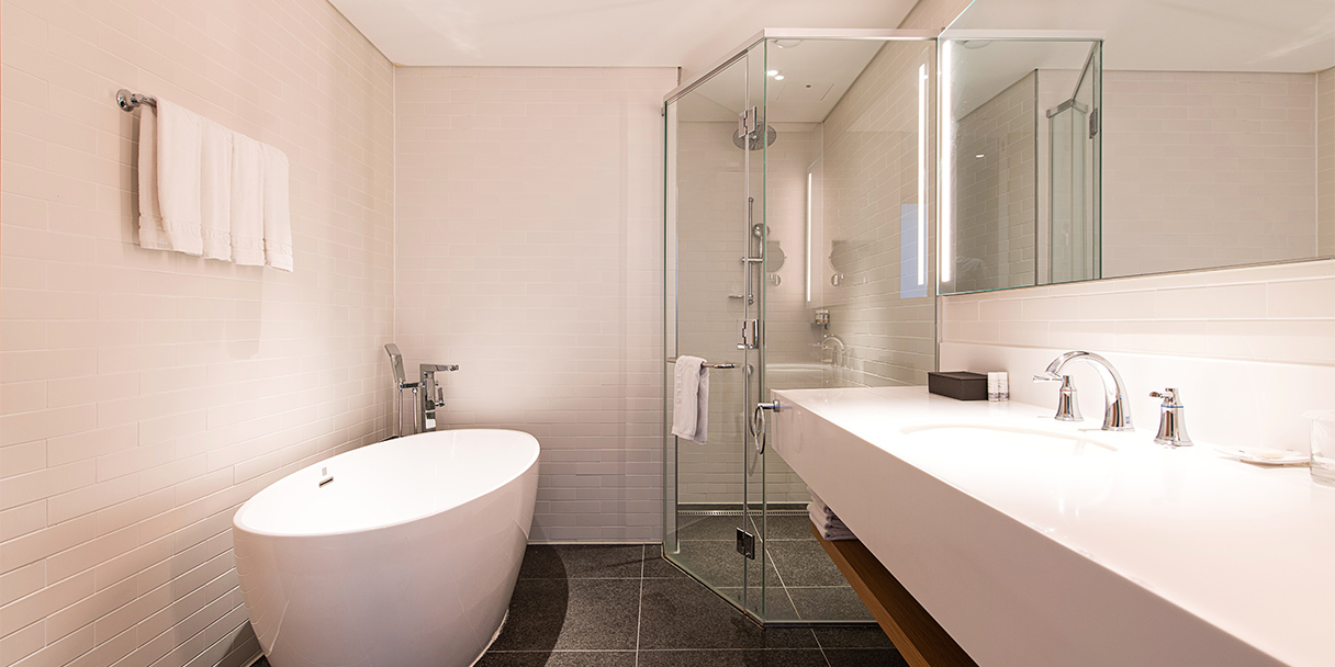 3인 투숙가능한 객실이며, 거실과 침실이 분리되어 있어 더욱 편리한 공간을 제공합니다. 지친 몸과 마음을 달래 줄 독특한 모양의 욕조가 있어 한층 안락한 시간을 제공하며 편안한 휴식이 가능합니다.